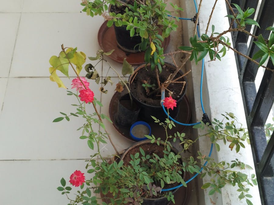10. Water distribution setup: Connect a small hose to the pump (pneumatic hose 4mm O.D can be used). Use small tees and route hose to your plants in the balcony.