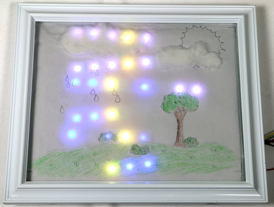 In this sample, we will connect an RGB LED strip to an Arduino and control it to indicate the weather forecast behind a picture.