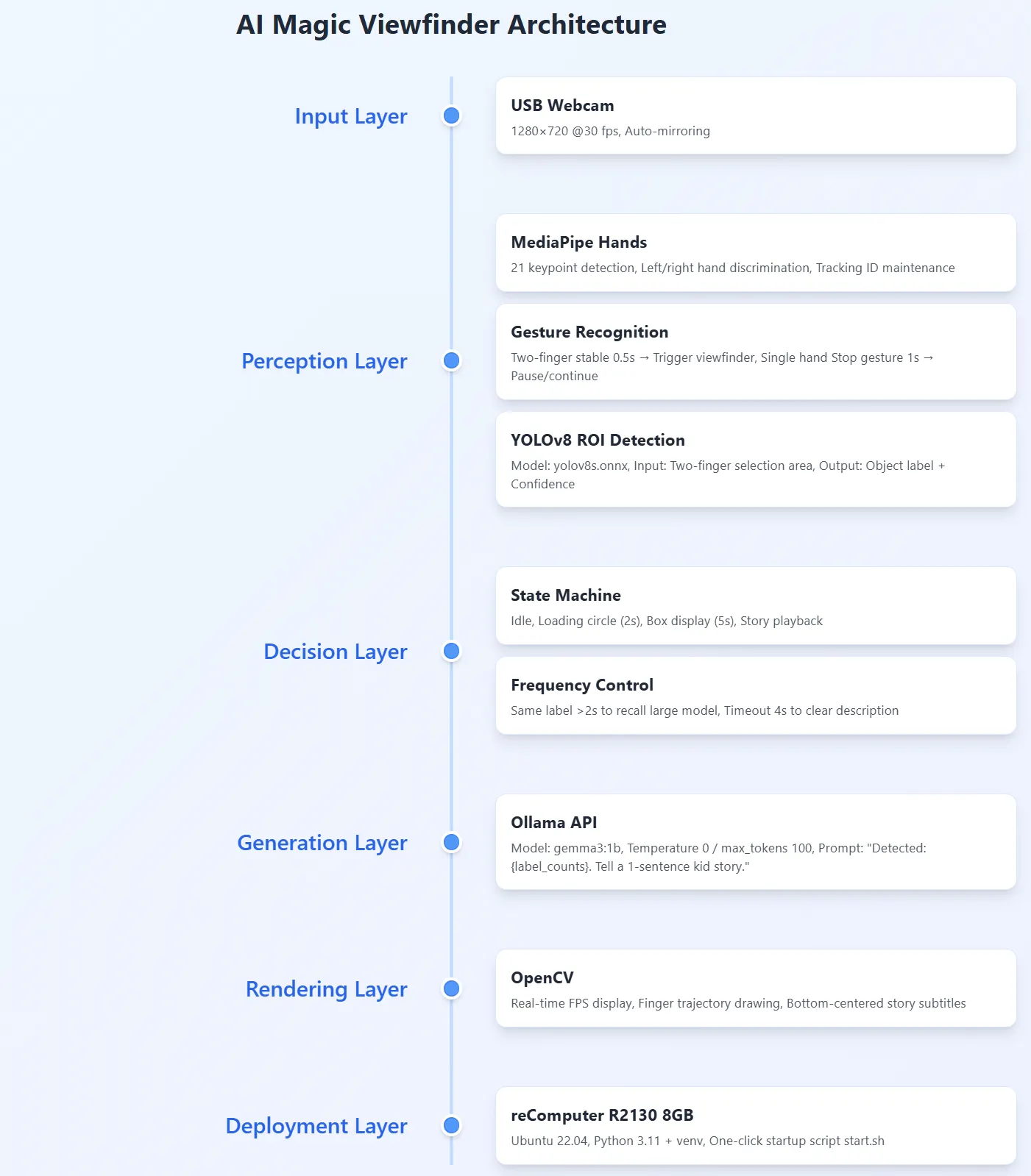 Back in my hometown for the summer, my niece tore around the house clutching a plastic dinosaur. I wanted her to “see” the world those creatures once ruled, so I hacked together a 1000-line core: pinch your index fingers and a red frame blooms on screen; whatever sits inside is named by YOLO, then Ollama spins a Jurassic micro-tale in the next breath. She lined up every toy dinosaur and demanded a story apiece—total chaos, total magic.