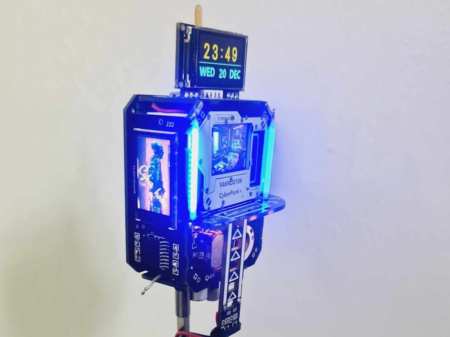 DETAILS"This is my new project that serves as both a lamp, a clock, and a cyberpunk-style model, featuring four LCD screens that display the time and show the indoor environment. At night, it automatically turns on LED filament lights, and in the morning, it turns them off, synchronized with the clock."